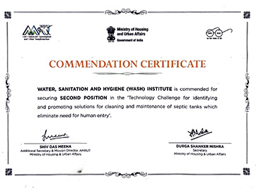 In January 2020, WASH Institute received the 5th Edition of India Industry Water Conclave and 7th Edition of FICCI Water Awards under the category "Water Initiative by NGO". The award was presented by the Hon'ble Minister of Jal Shakti, Shri Gajendra Singh Shekhawat for WASH Institute’s innovative onsite septage treatment technology, MTU.