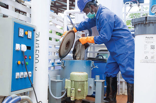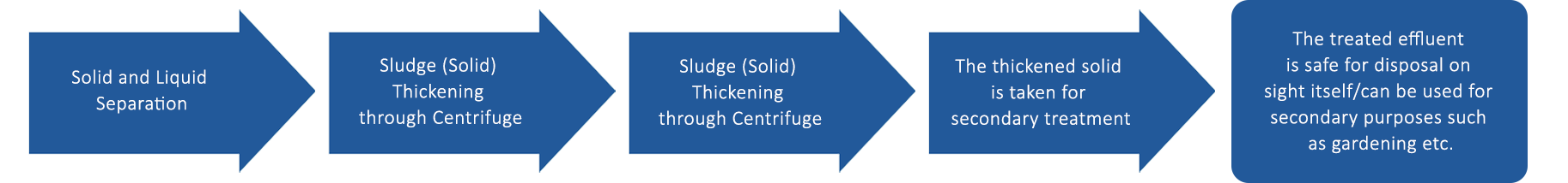While the liquid is separated from the solid, the effluent passes through the treatment process and is disposed. The sludge thickening process helps further in reducing the moisture content in the sludge. The current operational capacity of the MTU is 6000 liters/hr.