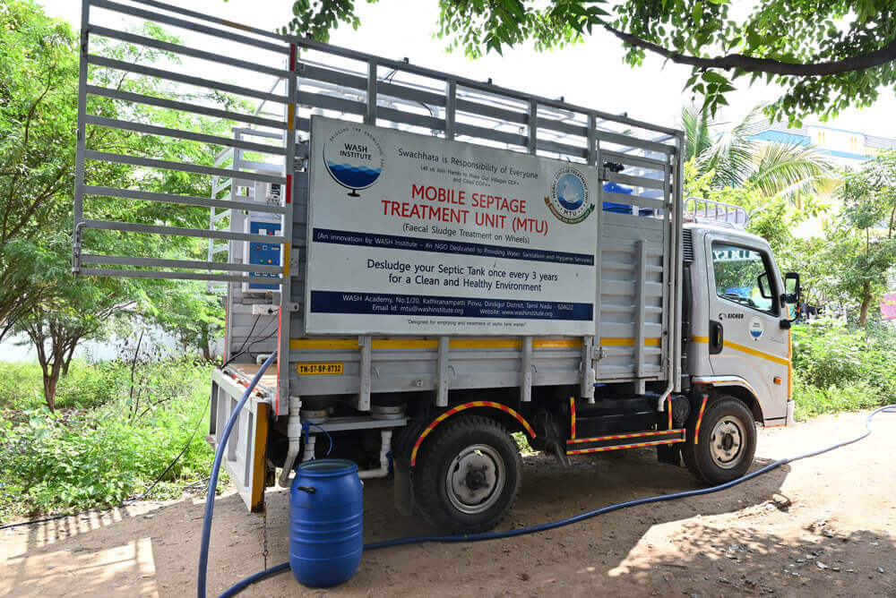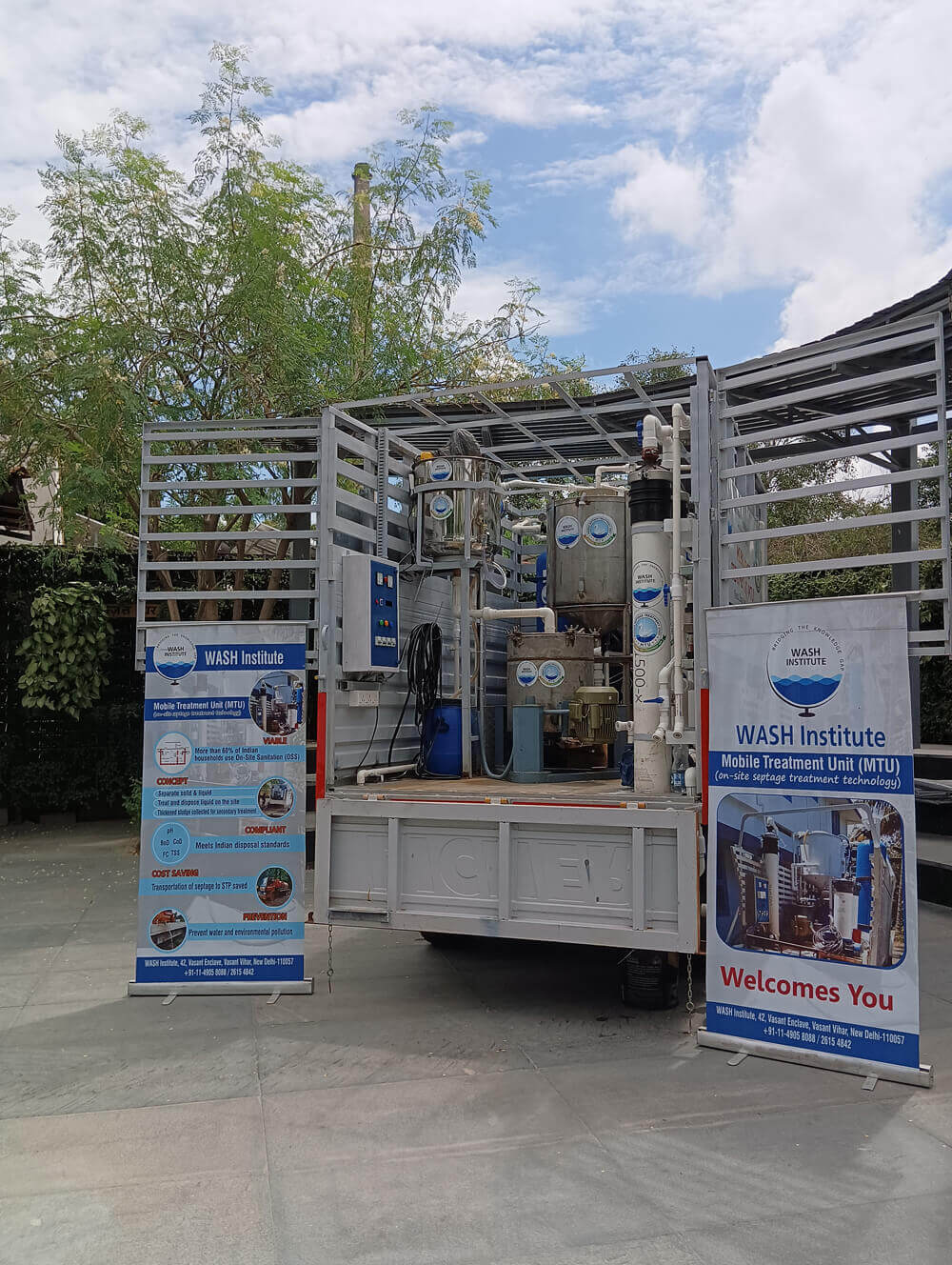 As most of the small towns do not have treatment facilities such as FSTPs/STPs, MTU can be a very apt option for emptying & treating of septage